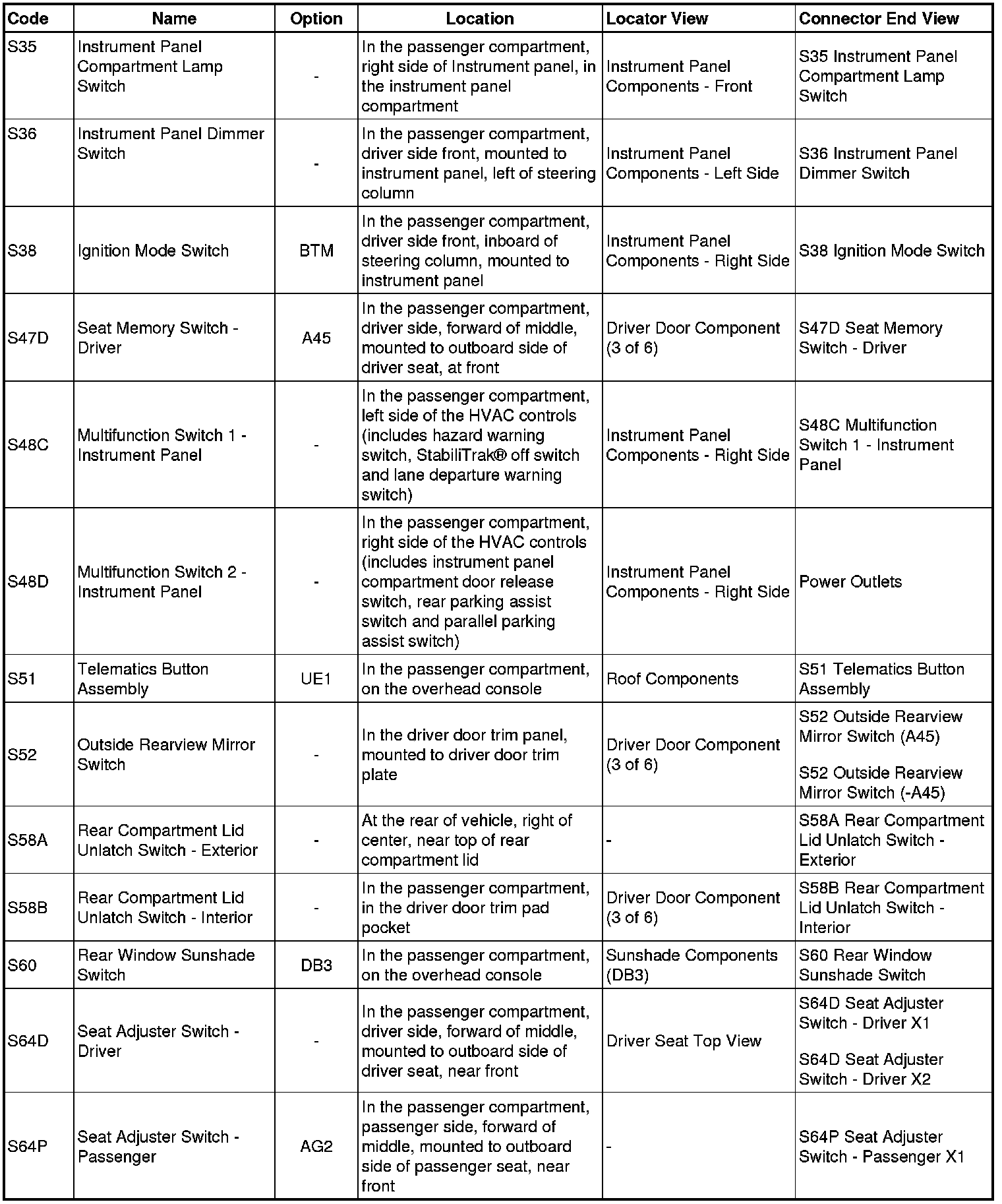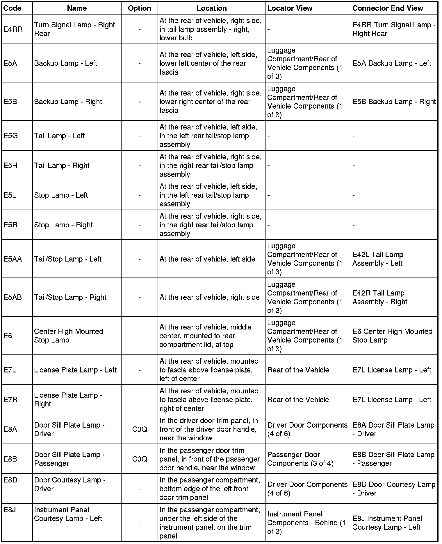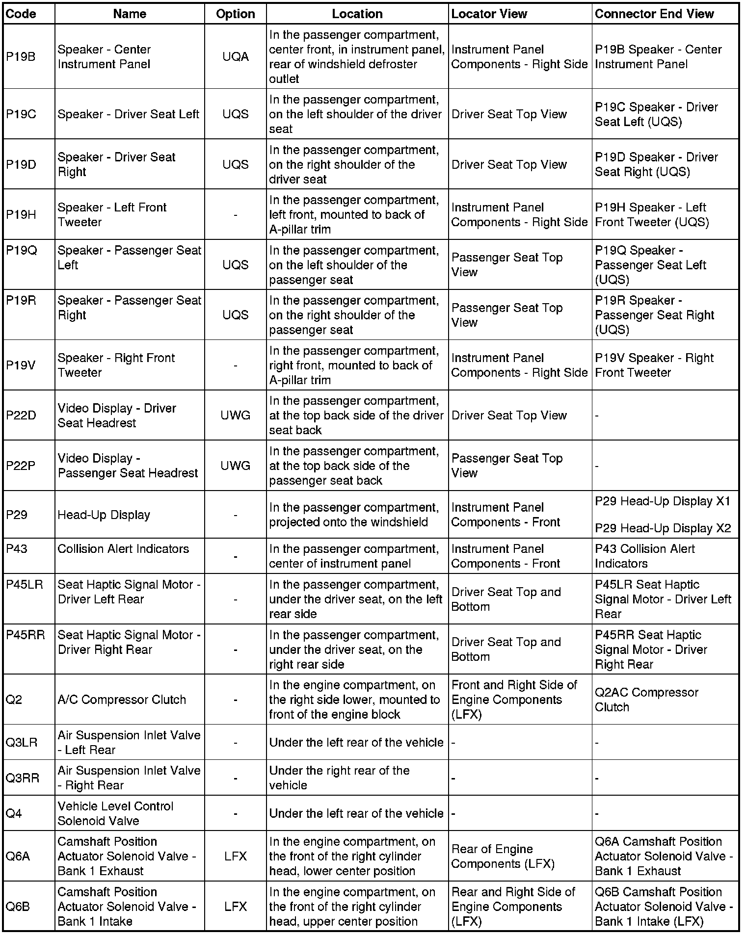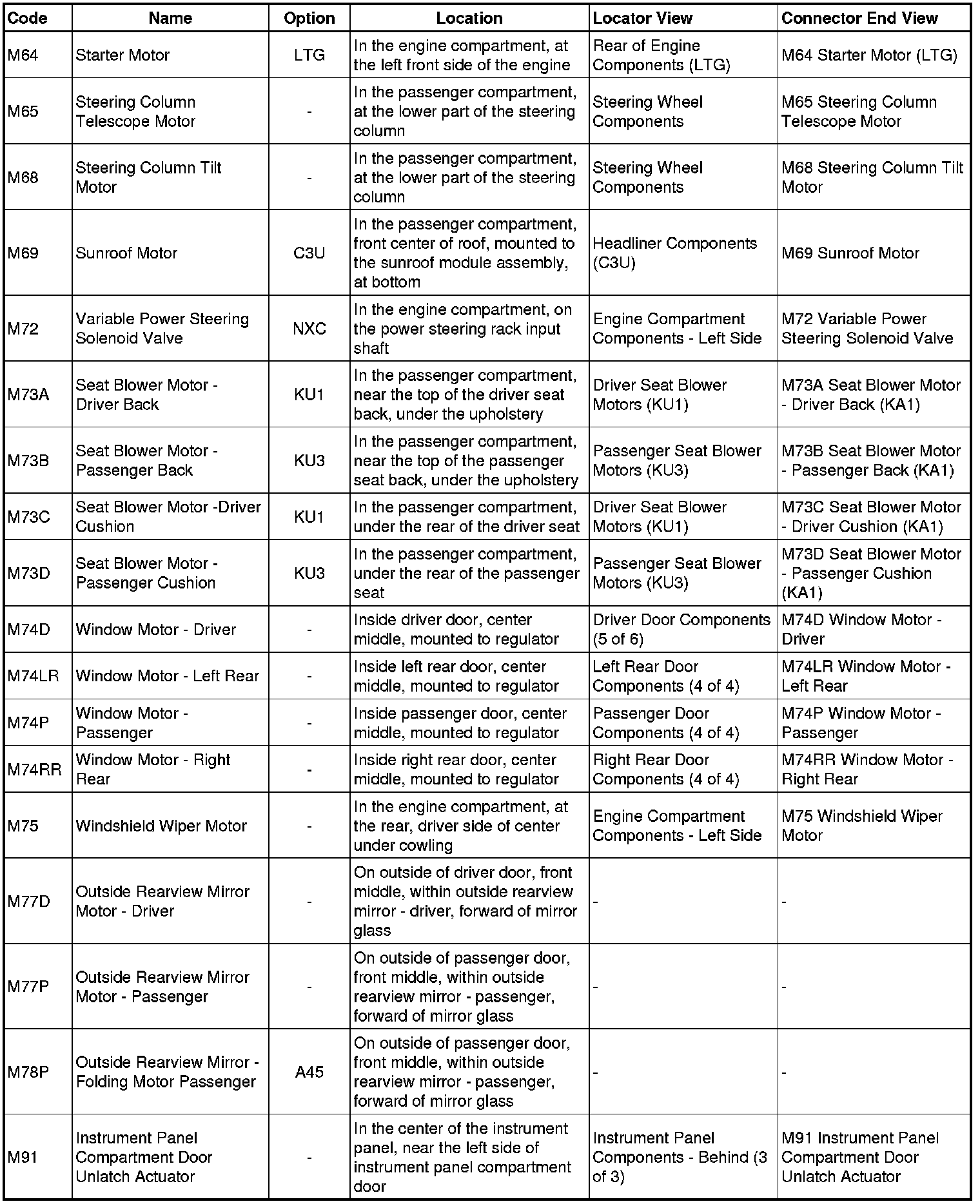 Master Electrical Component List