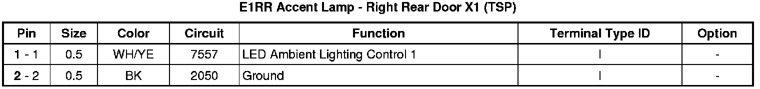 E1RR Accent Lamp - Right Rear Door X1 (TSP)