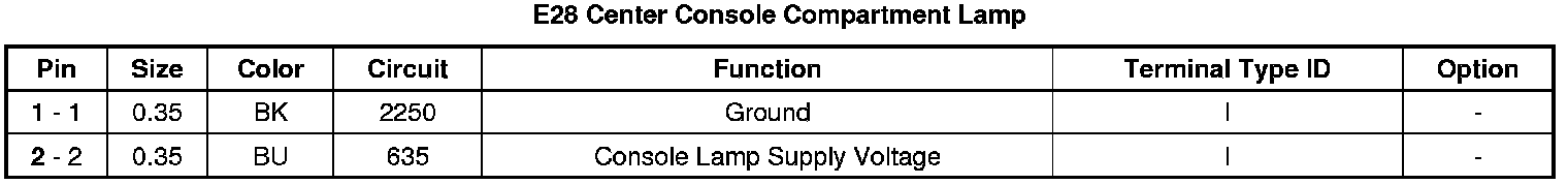 Center Console Compartment Lamp