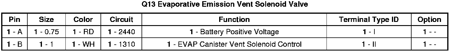 Q13 Evaporative Emission Vent Solenoid Valve