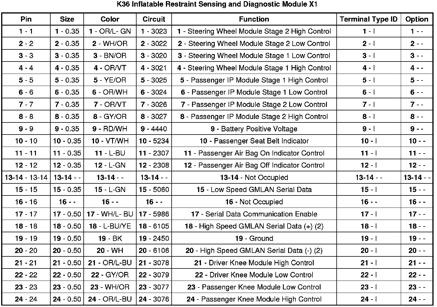 K36 Inflatable Restraint Sensing and Diagnostic Module X1