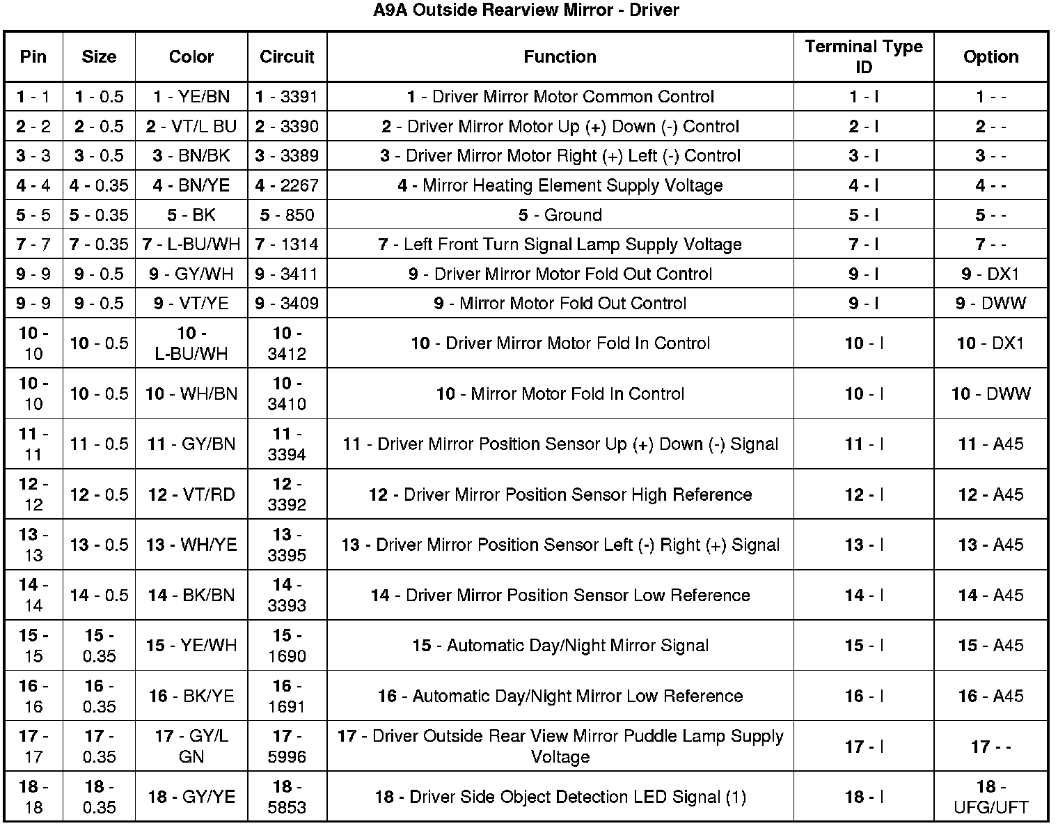A9A Outside Rearview Mirror - Driver