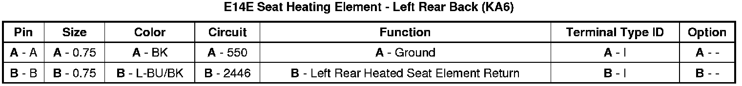 E14E Seat Heating Element - Left Rear Back (KA6)
