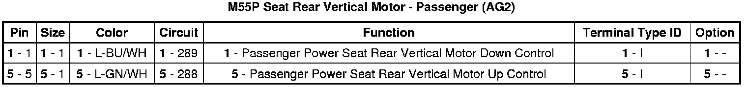 M55P Seat Rear Vertical Motor - Passenger (AG2)