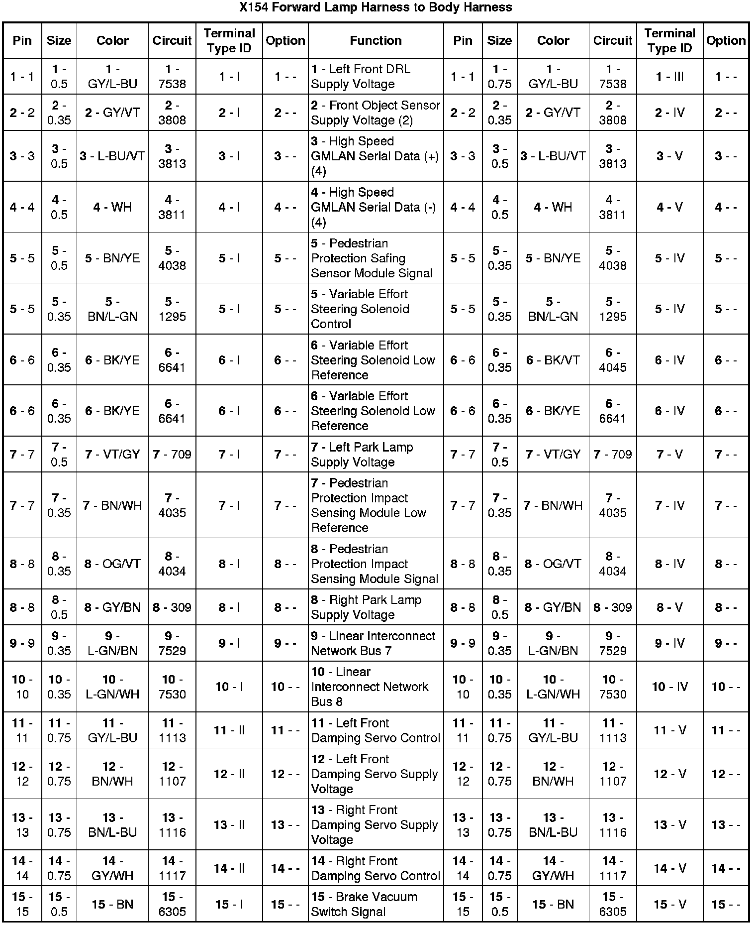 X154 Forward Lamp Harness to Body Harness