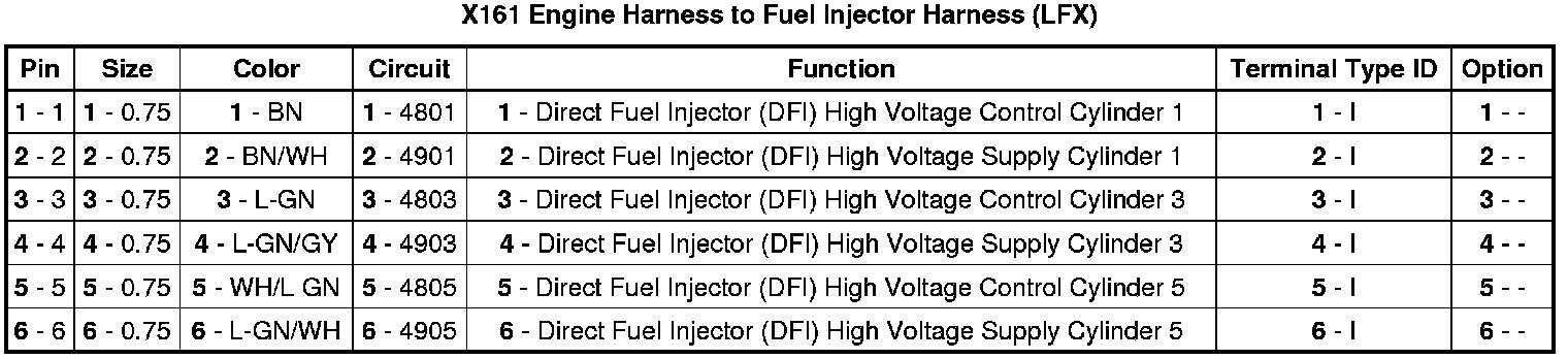 X161 Engine Harness to Fuel Injector Harness (LFX)