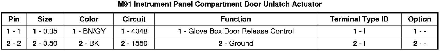 M91 Instrument Panel Compartment Door Unlatch Actuator