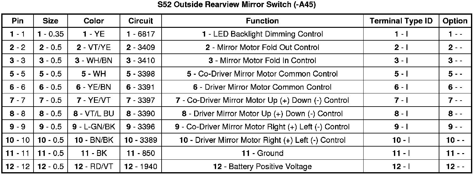 S52 Outside Rearview Mirror Switch (-A45)