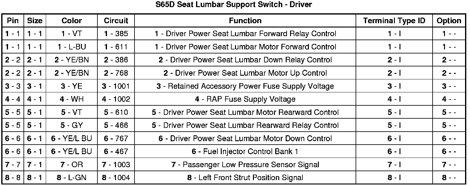 S65D Seat Lumbar Support Switch - Driver