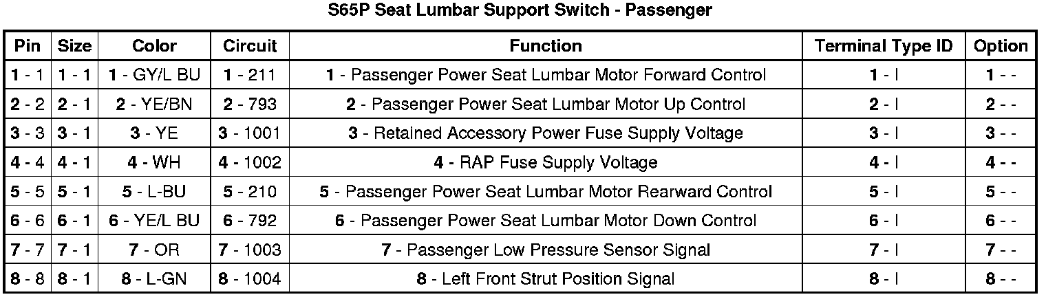 Seat Lumbar Support Switch - Passenger
