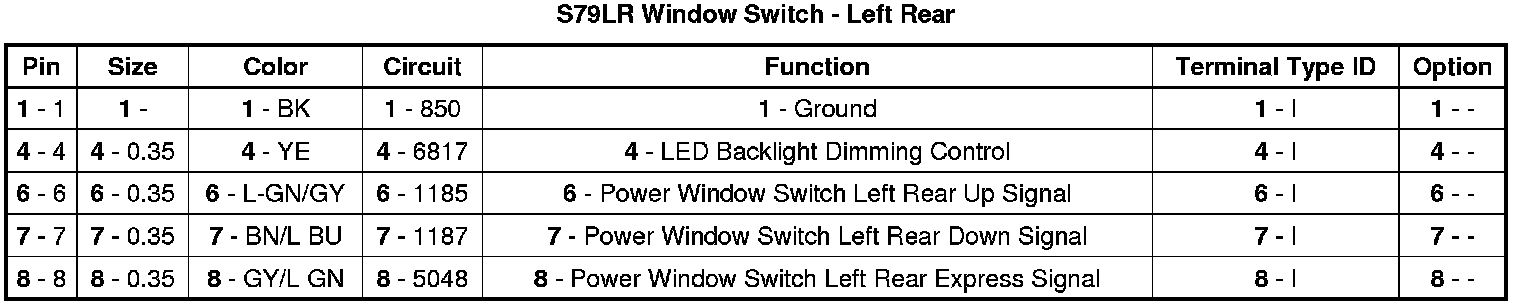 S79LR Window Switch - Left Rear