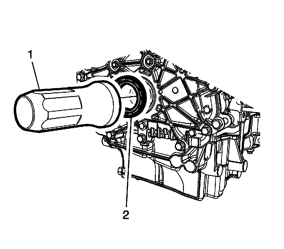 1. Use the EN-29184 - installer (1) or equivalent to install the crankshaft front oil seal (2).