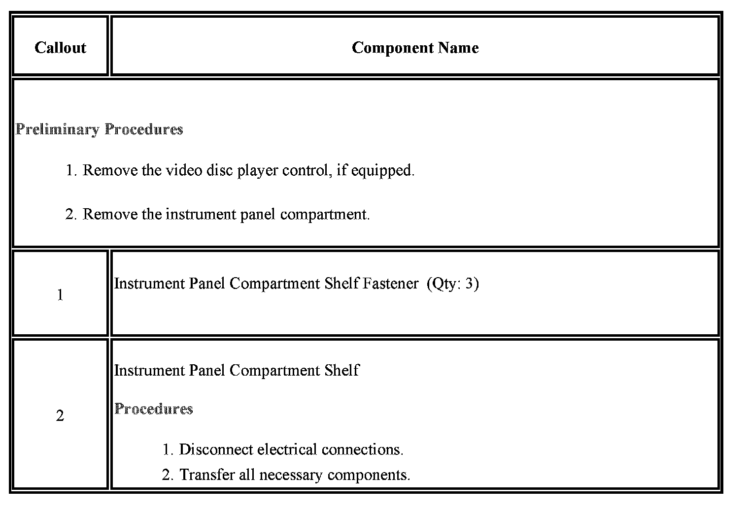 Instrument Panel Compartment Shelf Replacement