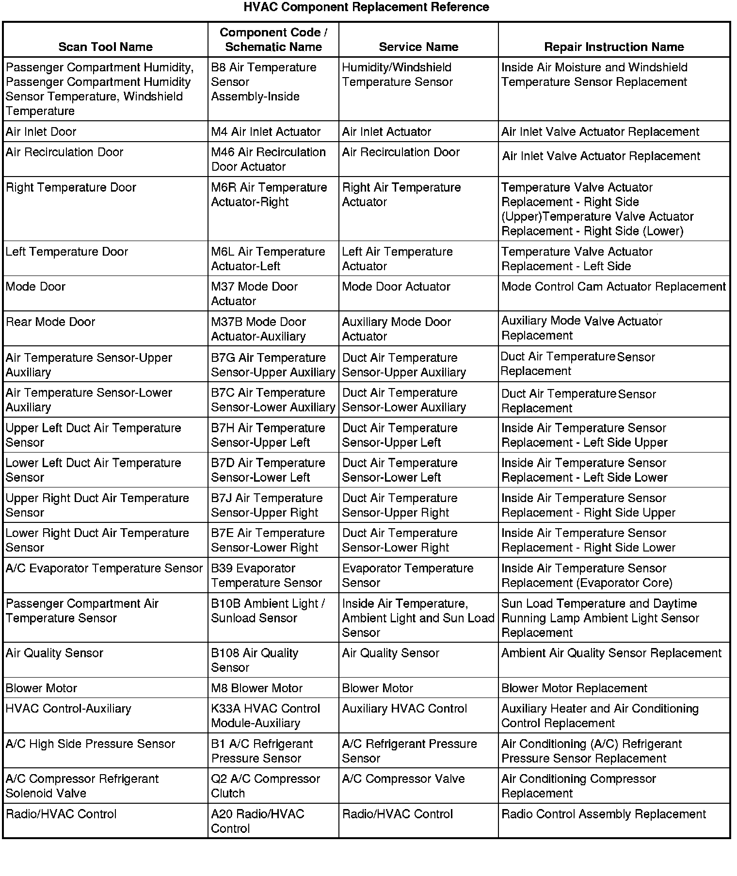 HVAC Component Replacement Reference