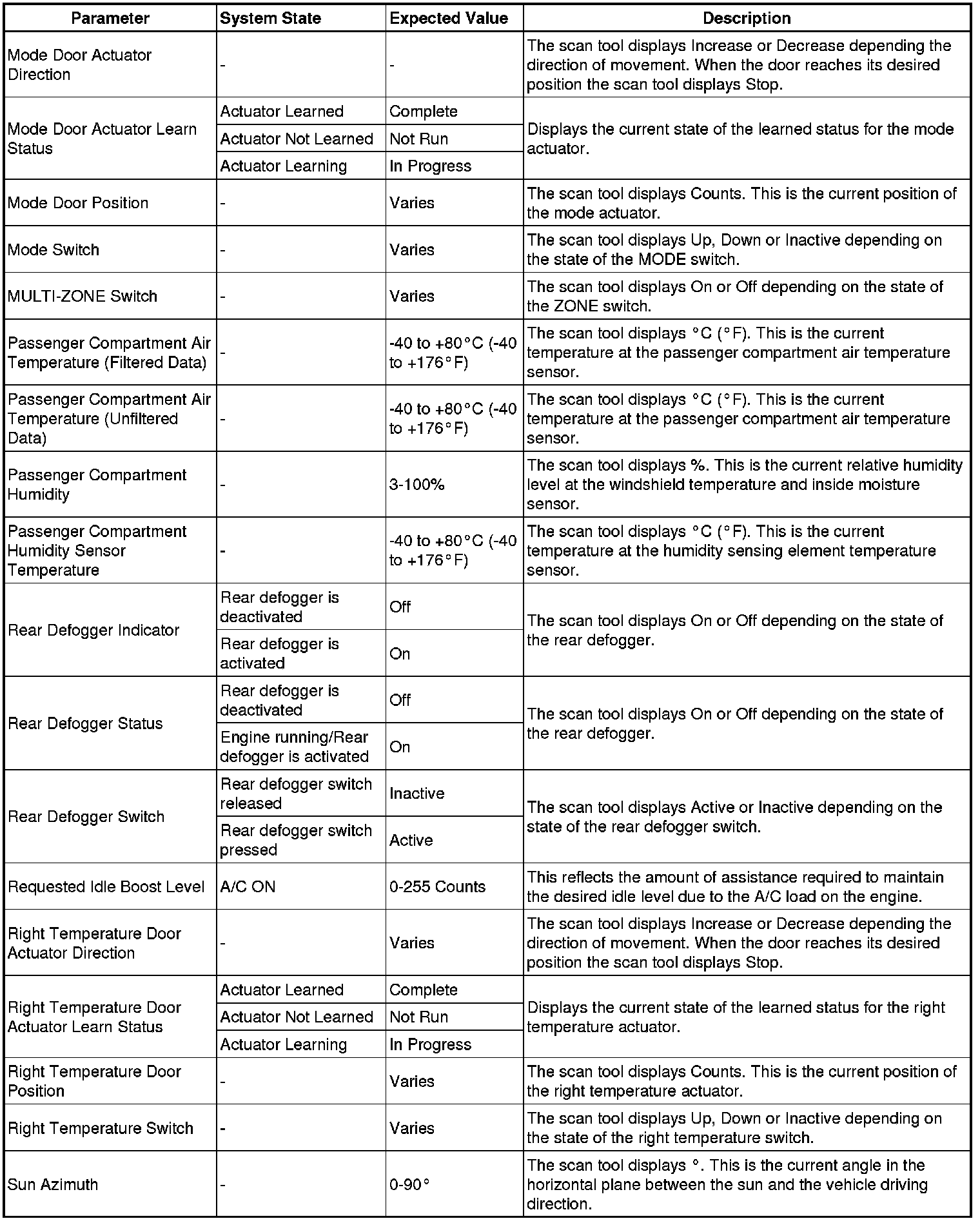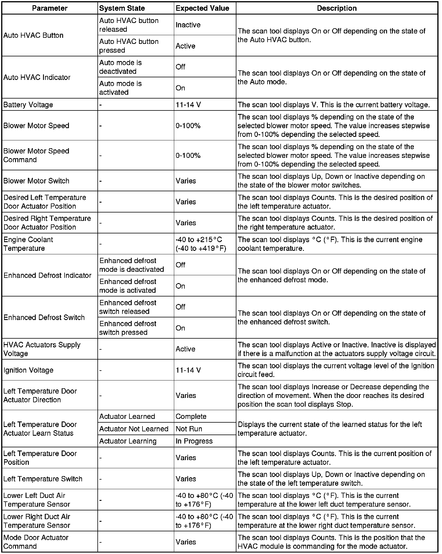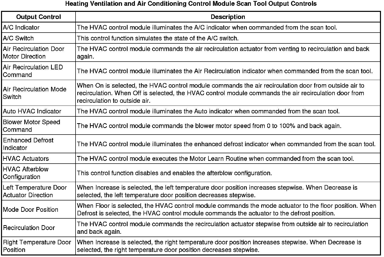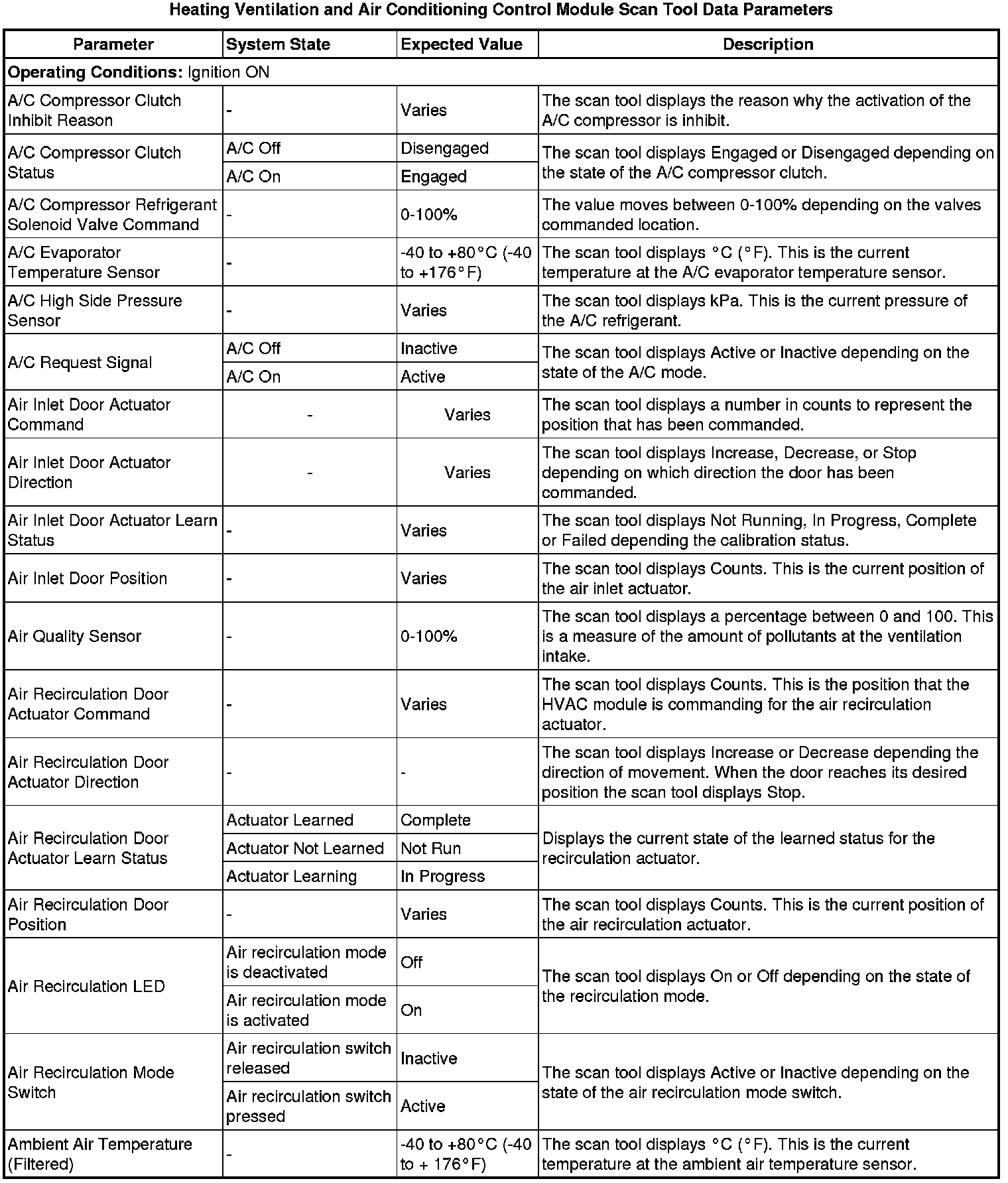 Heating, Ventilation and Air Conditioning Control Module Scan Tool Information