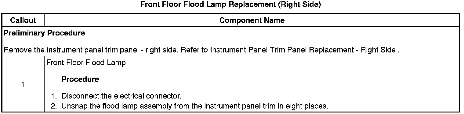 Front Floor Flood Lamp Replacement (Right Side)