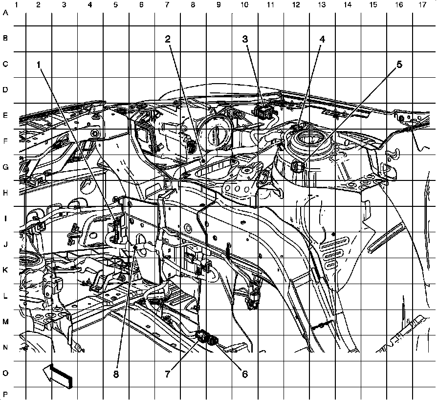 Forward Lamp Harness Routing - Right Front of the Engine Compartment