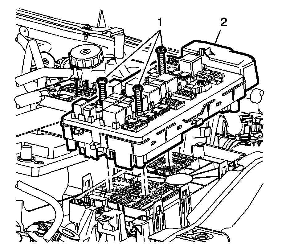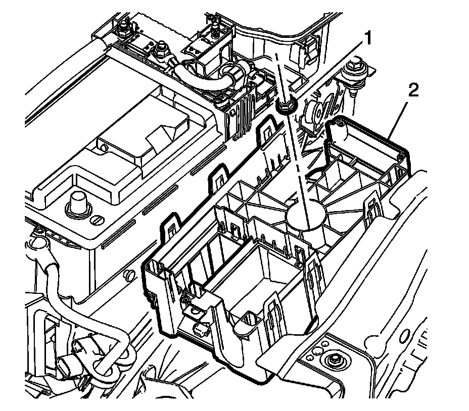 11. Remove the junction block base (2) from the inner wheelhouse.