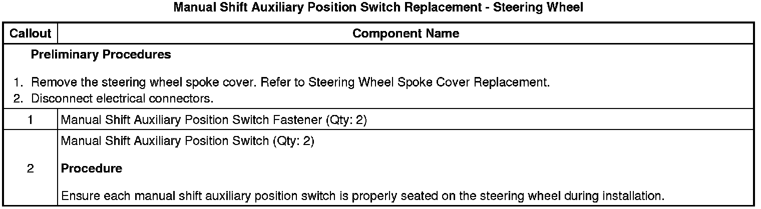 Manual Shift Auxiliary Position Switch Replacement - Steering Wheel