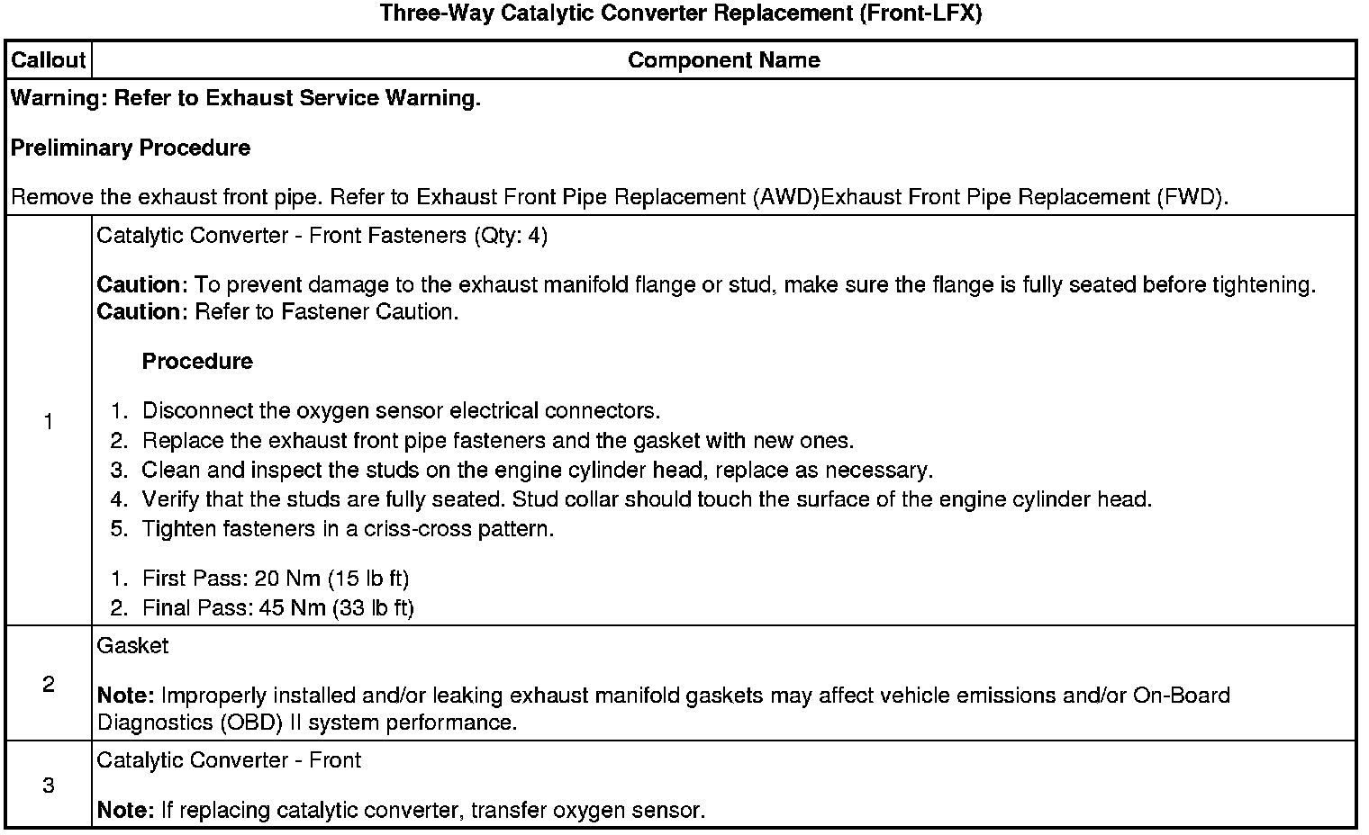 Three-Way Catalytic Converter Replacement (Front-LFX)