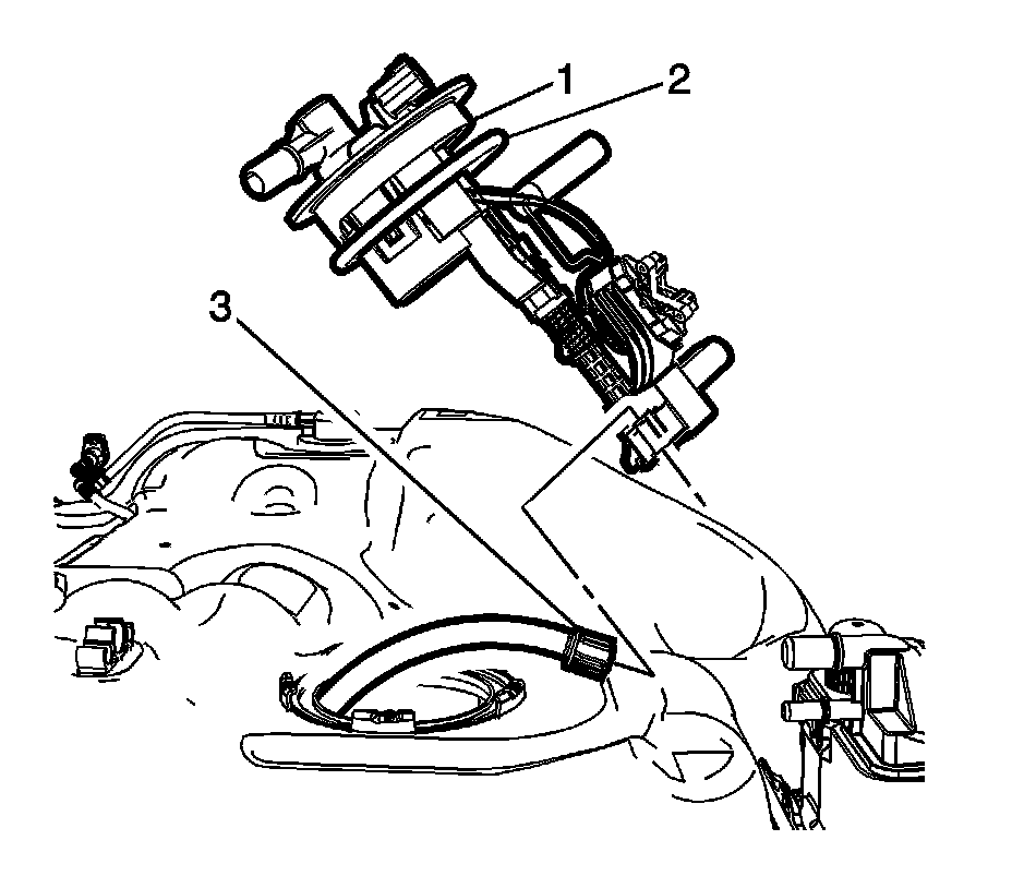 2. Connect the fuel sender to the fuel tank crossover fuel line (3).