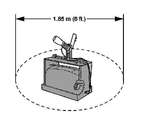 6. Clear a space on the ground about 1.85 M (6 ft) in diameter for deployment of the pretensioner. If possible, use a paved, outdoor location free of activity. Otherwise, use a space free of activity on the shop floor. Make sure you have sufficient ventilation.