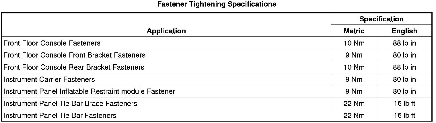 Fastener Tightening Specifications