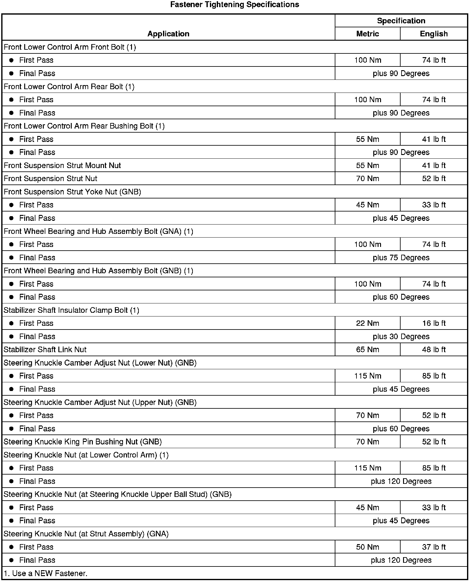 Fastener Tightening Specifications