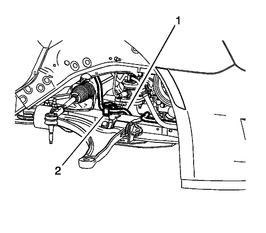8. Disconnect the stabilizer shaft links at the stabilizer shaft. Refer to Stabilizer Shaft Link Replacement Front Suspension.