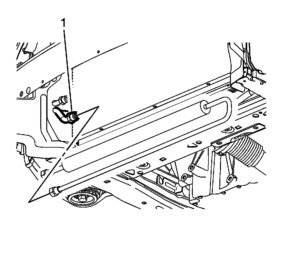 17. Disconnect the power steering gear outlet hose (1) from the power steering fluid cooler.