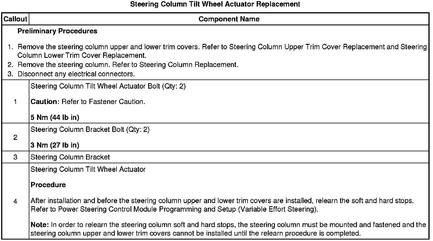 Steering Column Tilt Wheel Actuator Replacement