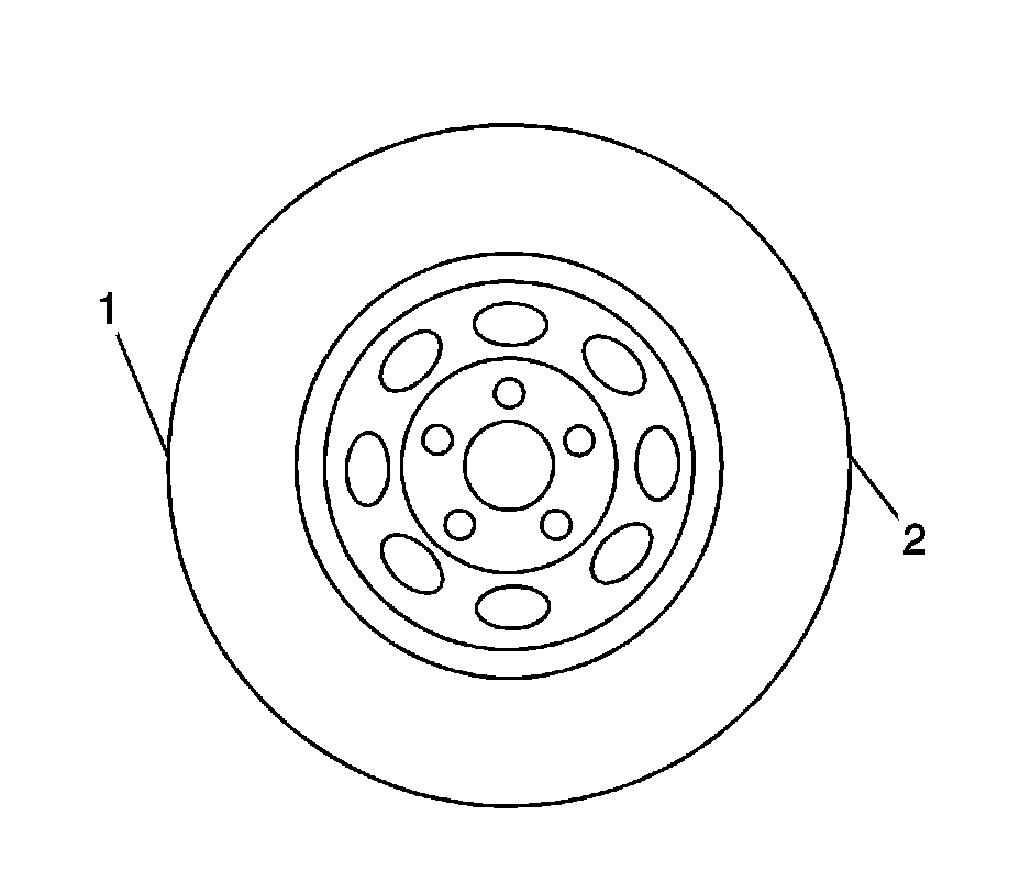6. Grasping the tire at the 3 o'clock (2) and 9 o'clock (1) positions, gently push in on one side of the tire in order to remove any lash.