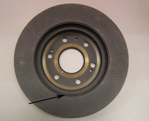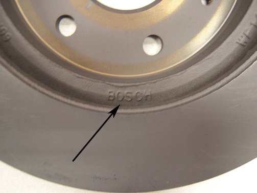 - Inspect the back side of the rotor for the Bosch Logo. If the Bosch logo IS NOT present, replace with OEM GM rotors, P/N 25819670.