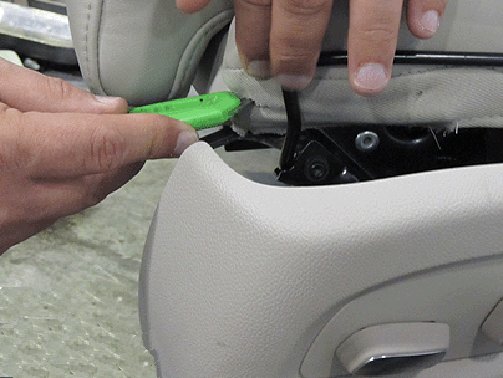- For the outboard corner repair, it will be necessary to remove this hog ring to fully release the J-channel from the seat frame.