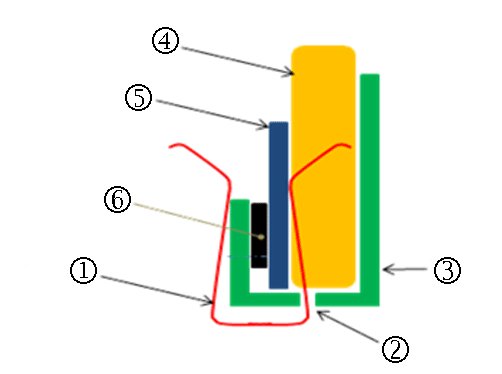 A cross section of the clip installation is shown in the illustration above. Ensure the clip (1) is inserted through the slit (2) in the seat material (3), between the foam (4) and the seat frame (5), capturing the material and J-channel (6).