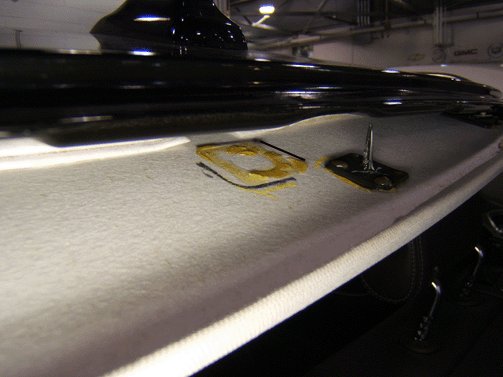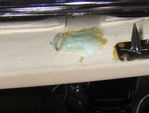9. Apply the mixed epoxy to the headliner trim panel as shown. Use alignment marks created in step 5 to locate the adhesive. Ensure there is full coverage.