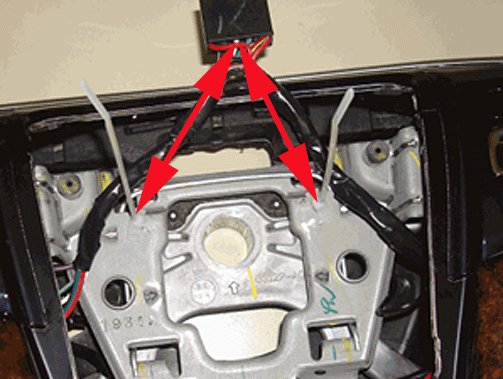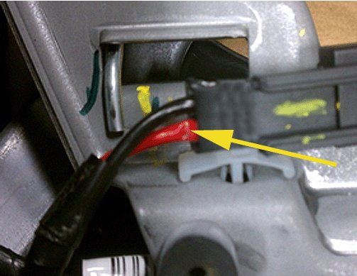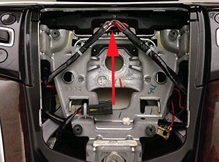 2. On the steering wheel side, wrap the red and black wires as shown.