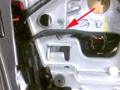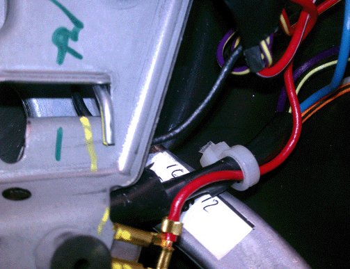 5. Carefully inspect the wires for damaged (missing) insulation. This damage is caused by the wiring making hard contact with the sharp metal edge of the stamped steel horn plate.