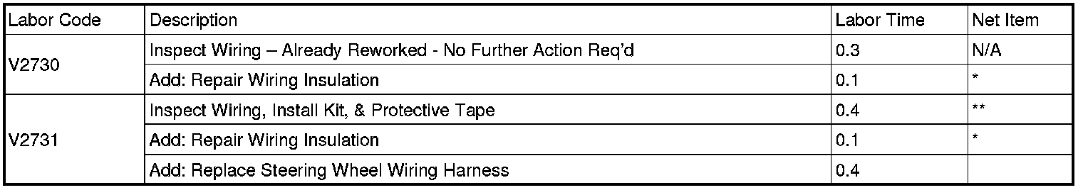 * The amount identified in "Net Item" should represent the cost of the actual amount of Liquid Vinyl Tape used to perform the required repairs, not to exceed $3.75 USD/CAD.