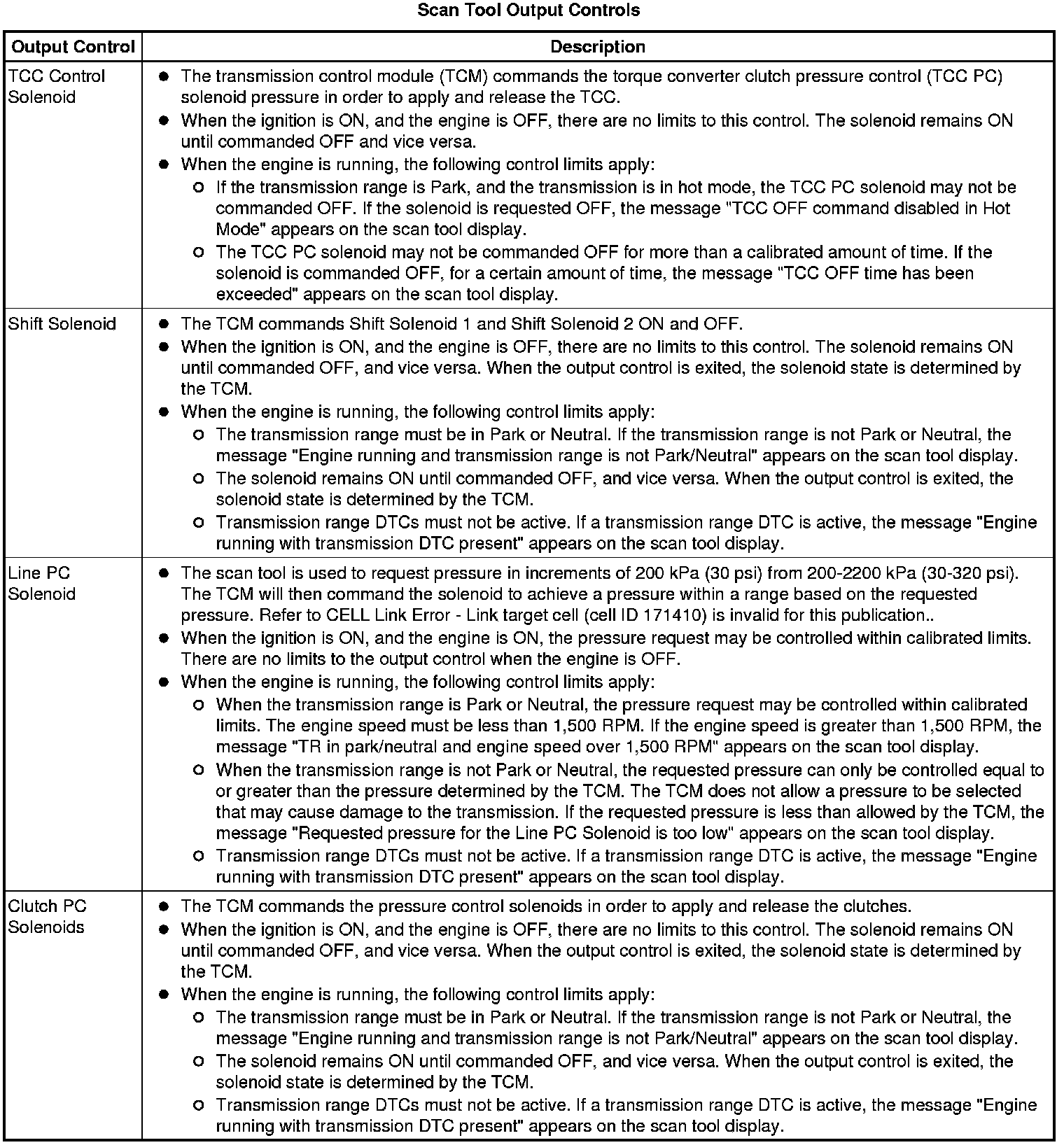 The Transmission Control Module Scan Tool Data List contains all transmission related parameters that are available on the scan tool. The list is arranged in alphabetical order. A given parameter may appear in any one of the data lists, and in some cases may appear more than once, or in more than one data list in order to group certain related parameters together.