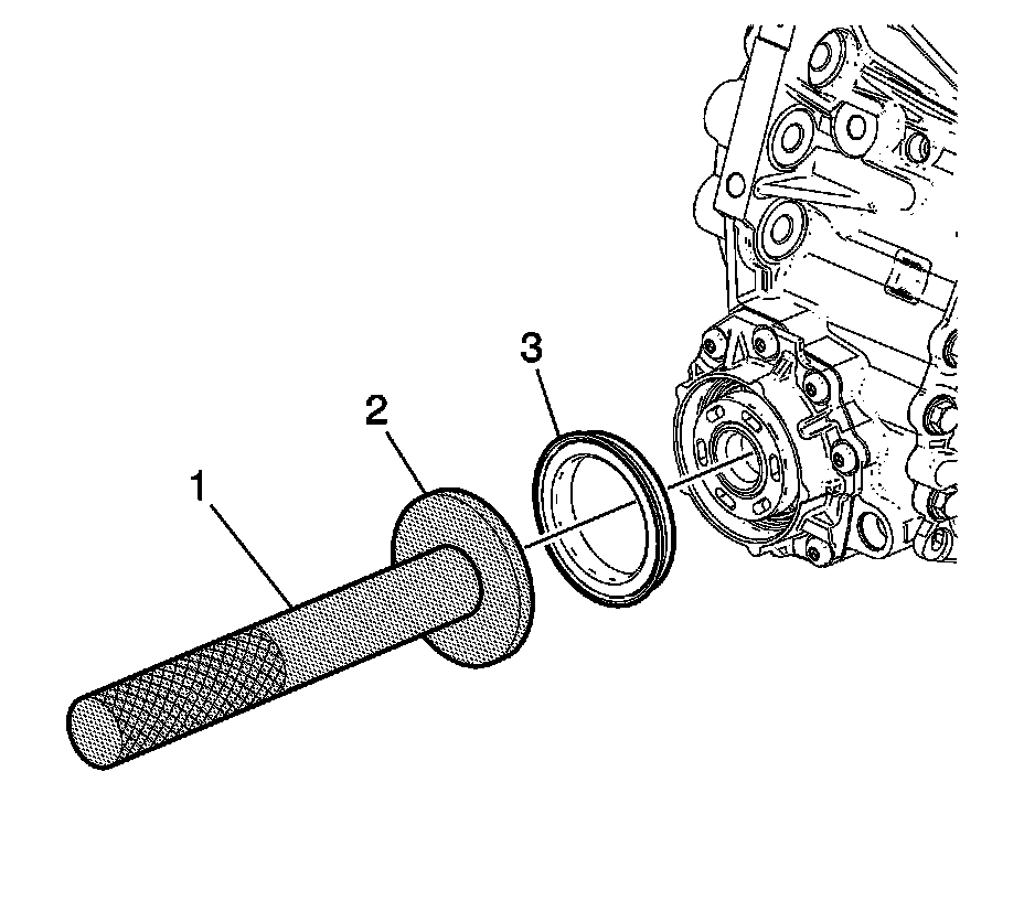 6. Install the second design front wheel drive intermediate shaft dirt deflector (1) - model dependant using the DT 50768 seal installer (2) and J 8092 driver handle (3). Refer to New Product Information Description and Operation for additional information.