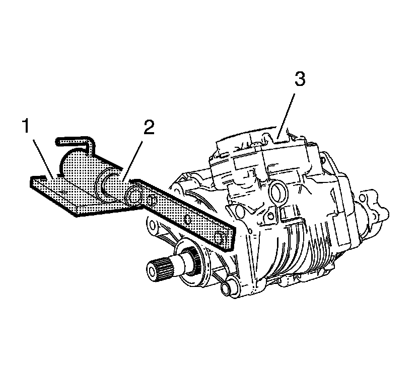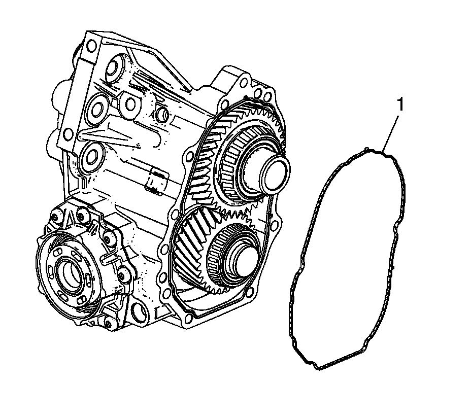 3. Install the rear extension housing (1) and idler gear shaft to the transfer case housing. Position the idler gear shaft into the center opening of the idler gear.