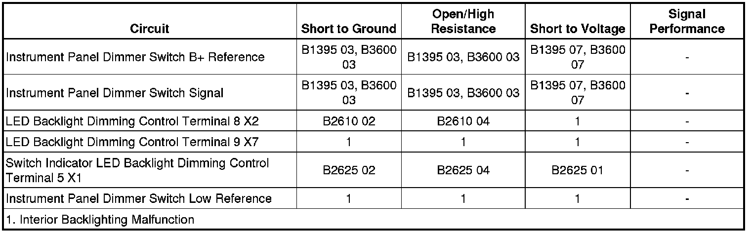 The BCM will not dim any interior backlighting. All interior backlighting will default to the level selected prior to the fault being present.