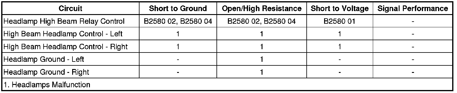- Headlamp High Beam Control Circuit Short to Ground