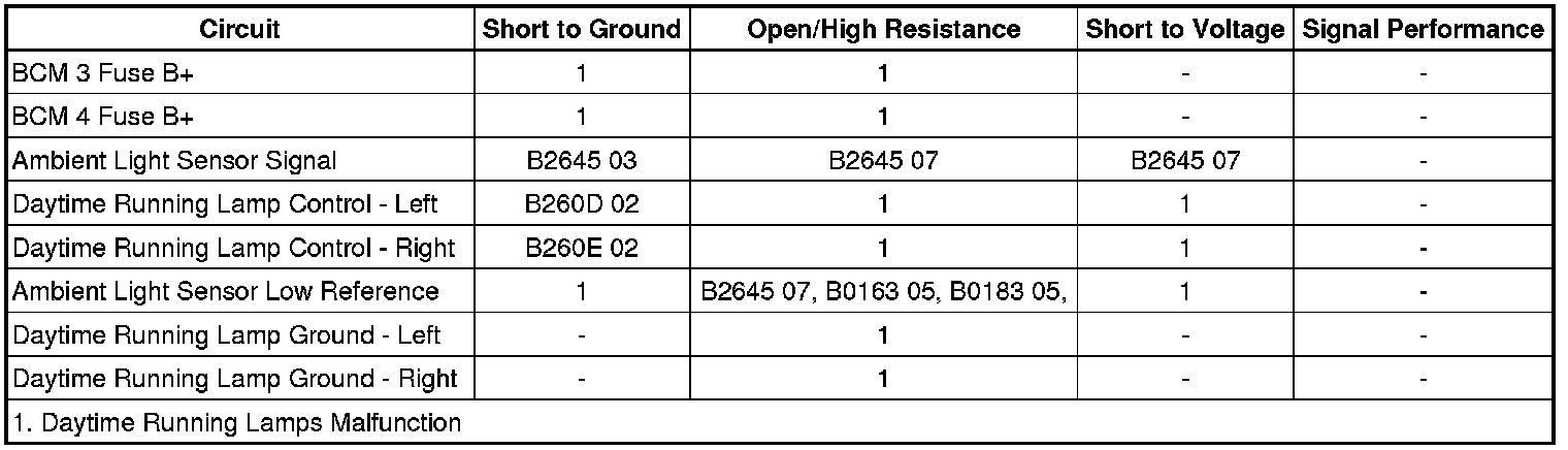 - Right Daytime Running Lamp and Front Park Lamp Control Circuit Short to Ground