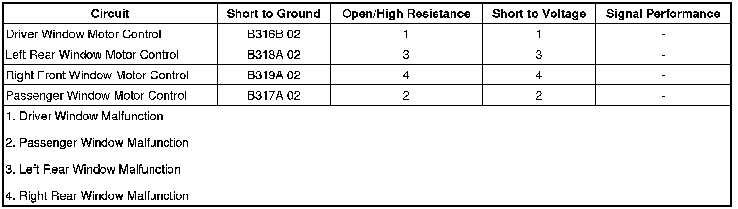 Refer to Circuit/System Testing - Driver Window Switch Malfunction.