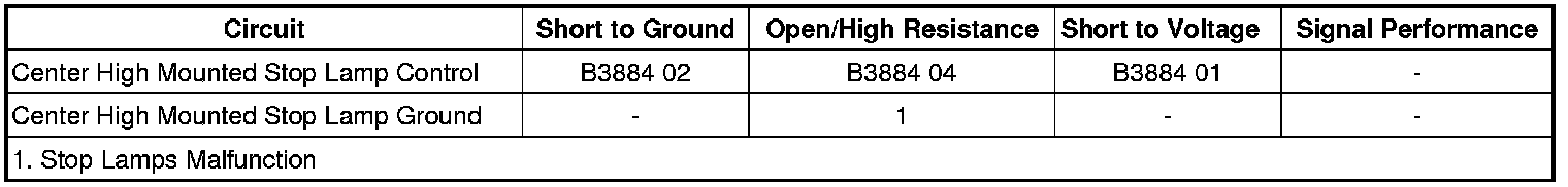 - Center High Mounted Brake Lamp Circuit Open