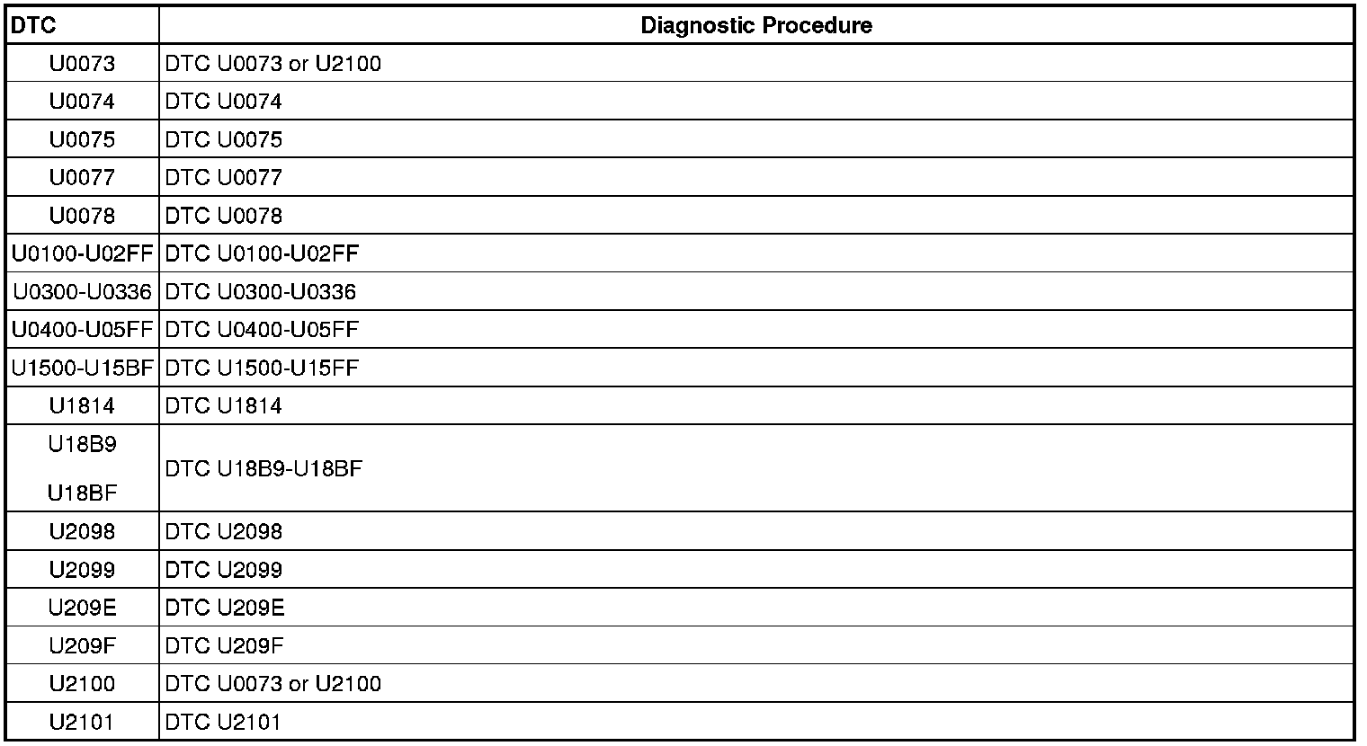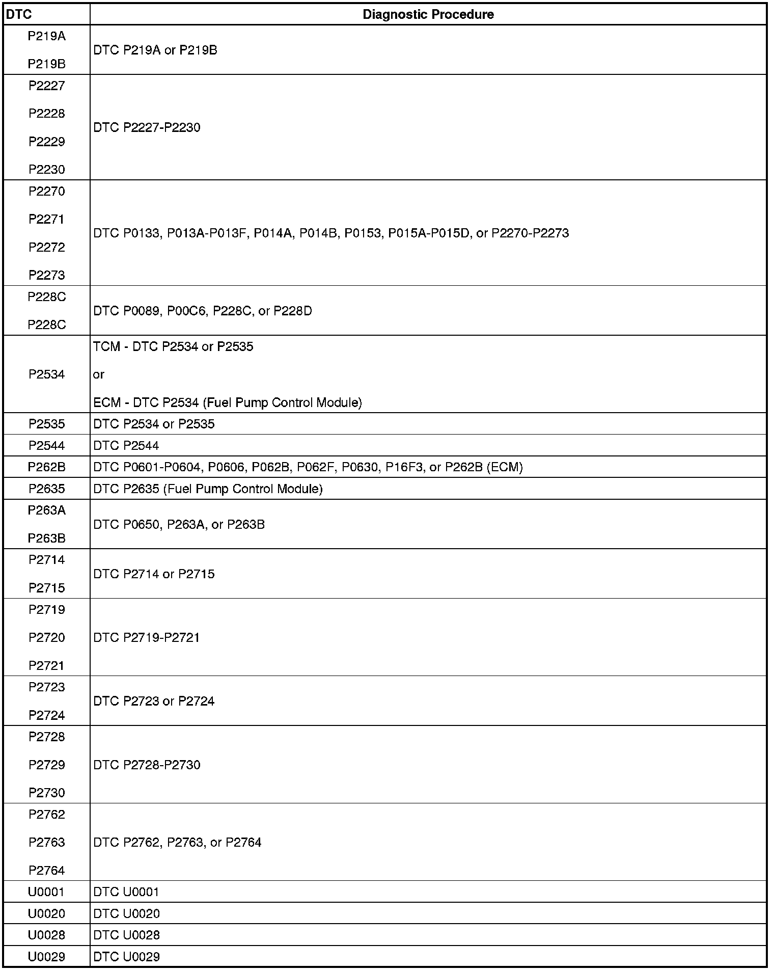 This master DTC list includes all applicable DTCs in alphanumeric order.