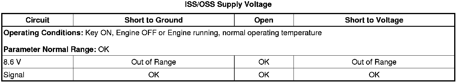 * If the scan tool ISS/OSS Supply Voltage indicates out of range, the fault could also be caused by the transmission input shaft speed sensor.