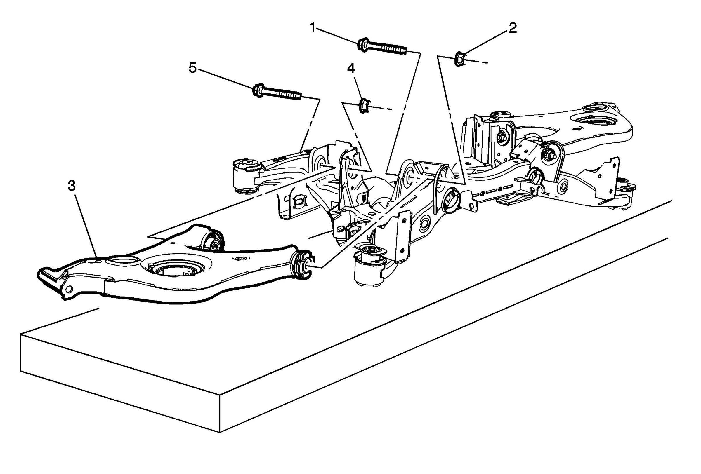2.Install the lower control arm bolts (5) and (1).
